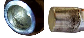 ** and corrosion at the modular junction, a process termed trunnionosis (Fig. 4). (The trunnion is the tapered portion of the femoral stem prosthesis where the femoral head is impacted during implantation.)