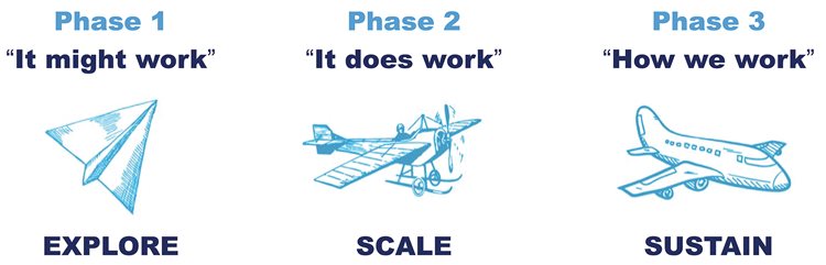 Once graduated to Phase 2, teams move from conducting small experiments to testing on a larger scale. Teams are challenged in Phase 2 to demonstrate sustained impact and secure the resources and stakeholder support necessary to move solutions toward implementation. This phase usually takes about a year.